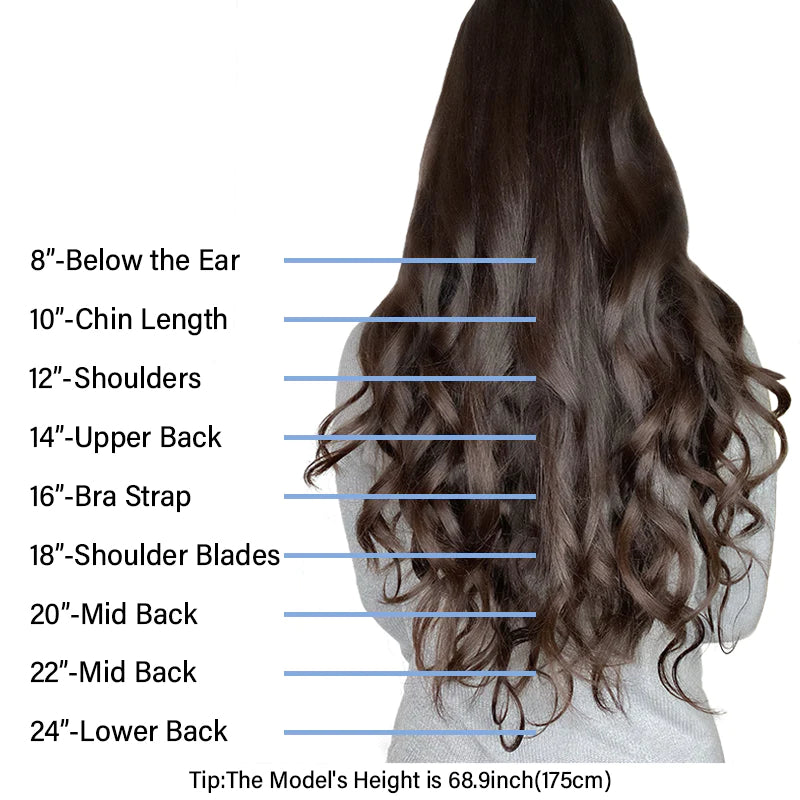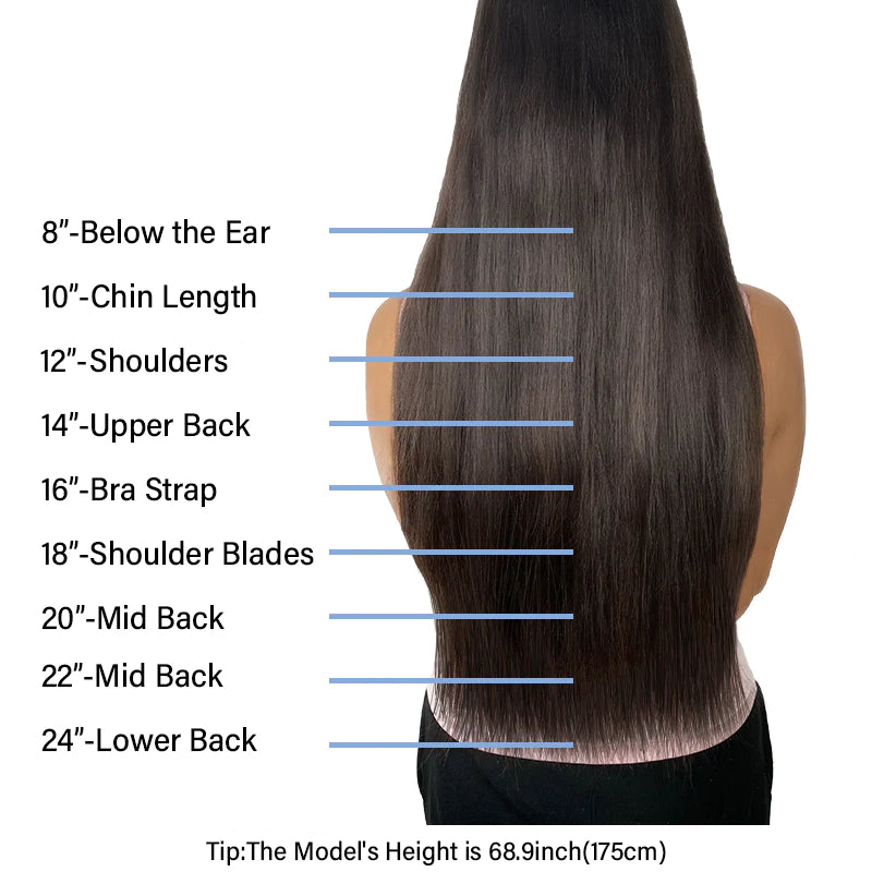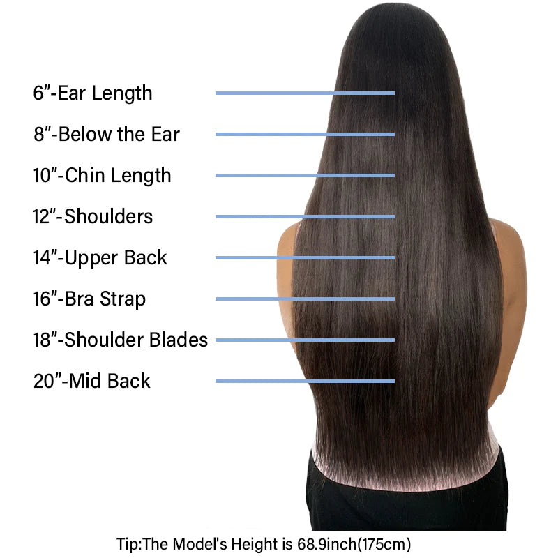 You can see the size guide on each product's page but here we collect all of our human hair extensions and list the size chart below for your convenience.